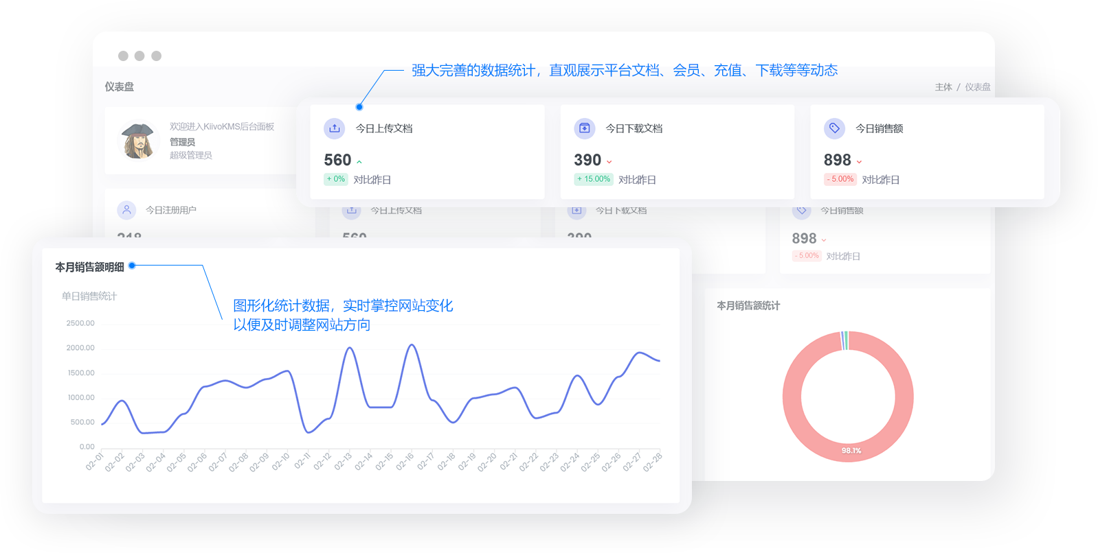 資源、流量、用戶、支付、下載、VIP運營等數(shù)據(jù) 可視化分析和跟蹤